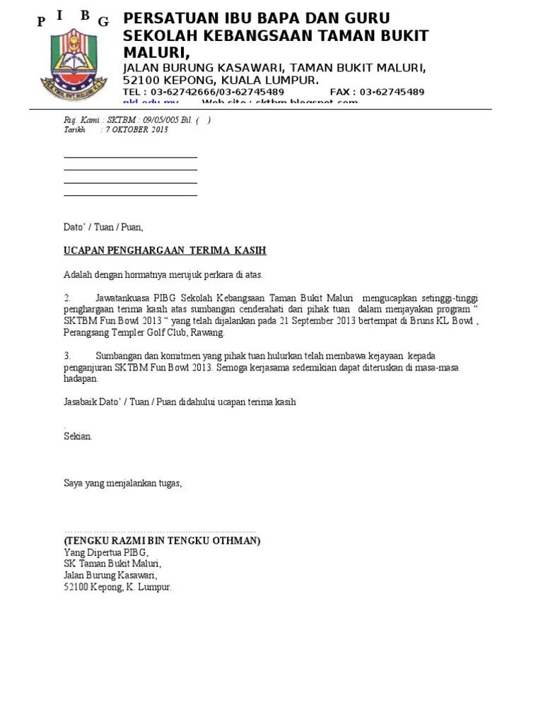 Surat terima contoh kasih rasmi penghargaan dan ucapan atas sumbangan ceramah ribuan tahniah kepada quran sekolah khatam dewan buku urdu.